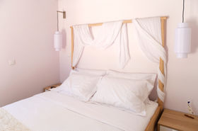 Bedroom is also air conditioned with a double bed and a dressing table.